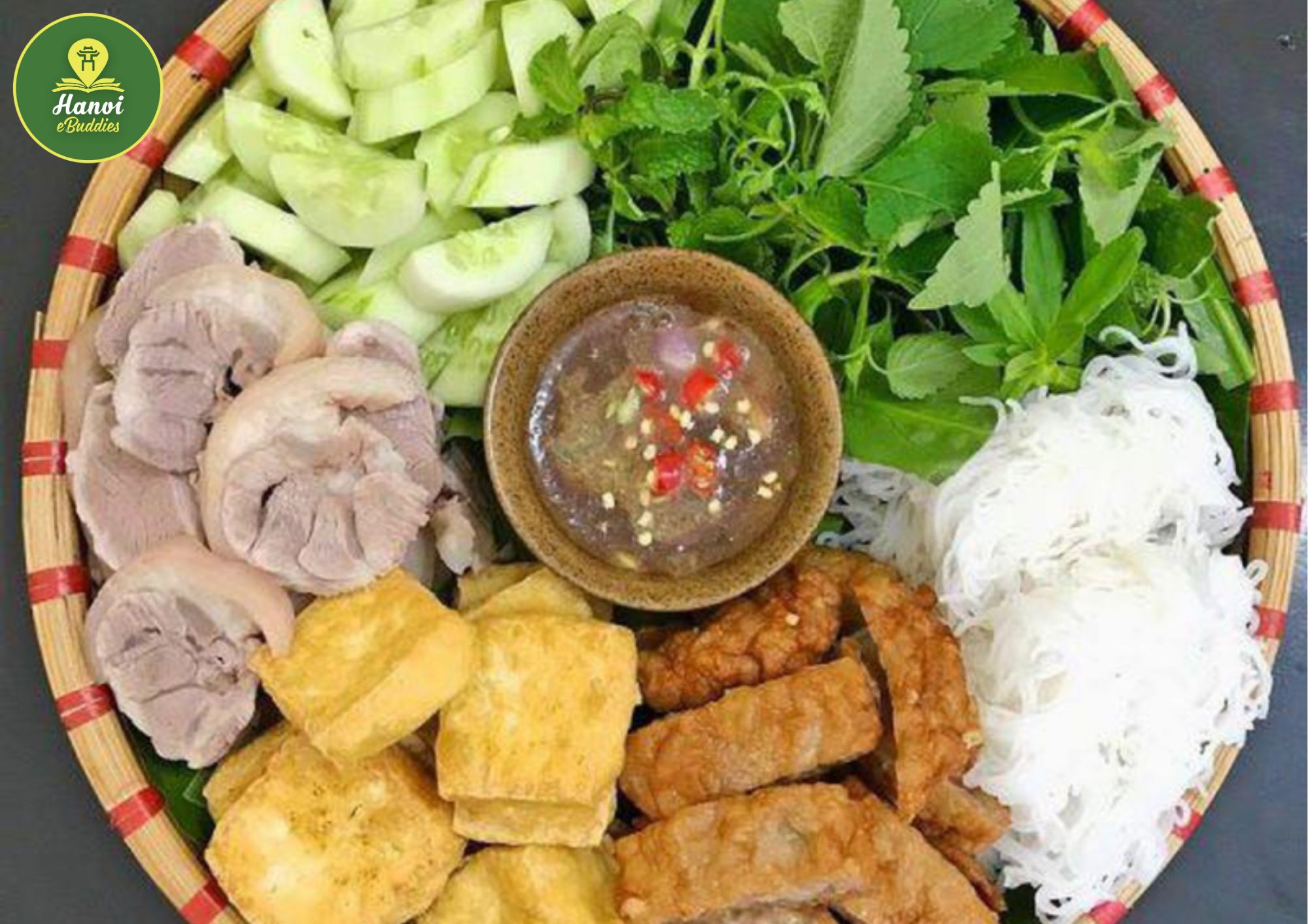 According to old Hanoi residents, it initially belonged to rural people. The simplest version included just bún (vermicelli), fried tofu, and a few fresh herbs to diversify family meals. Later, its delicious and unique taste led street vendors to sell it throughout the city. Setting up this dish stall was easy: just two baskets containing all the ingredients and a few small stools.